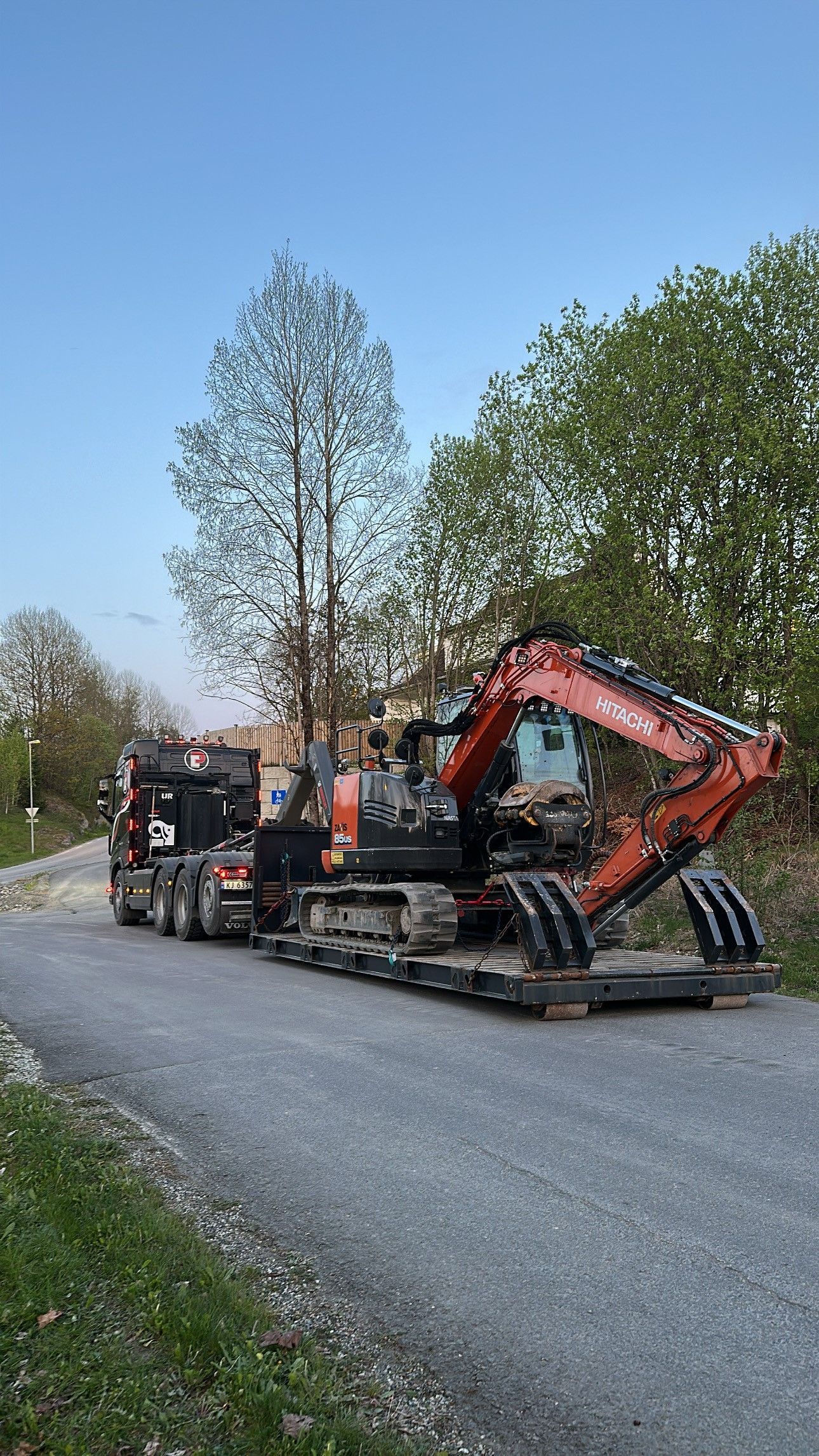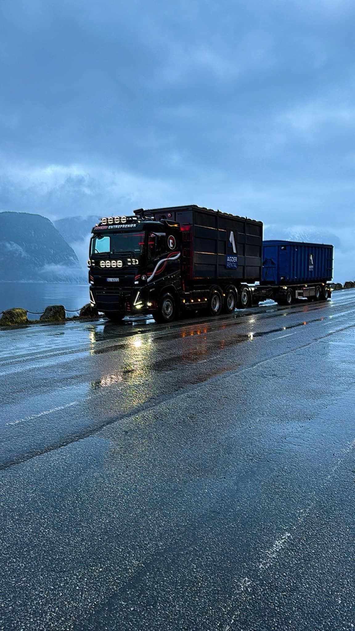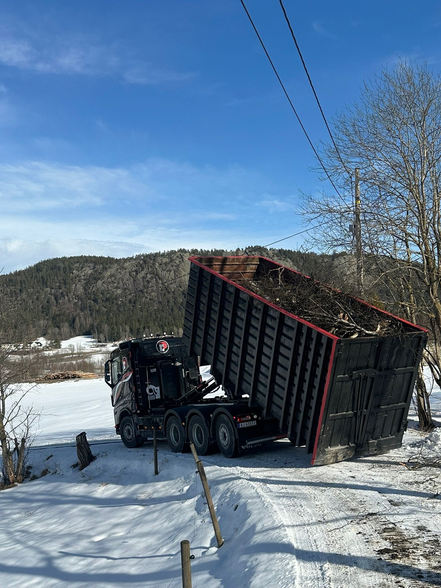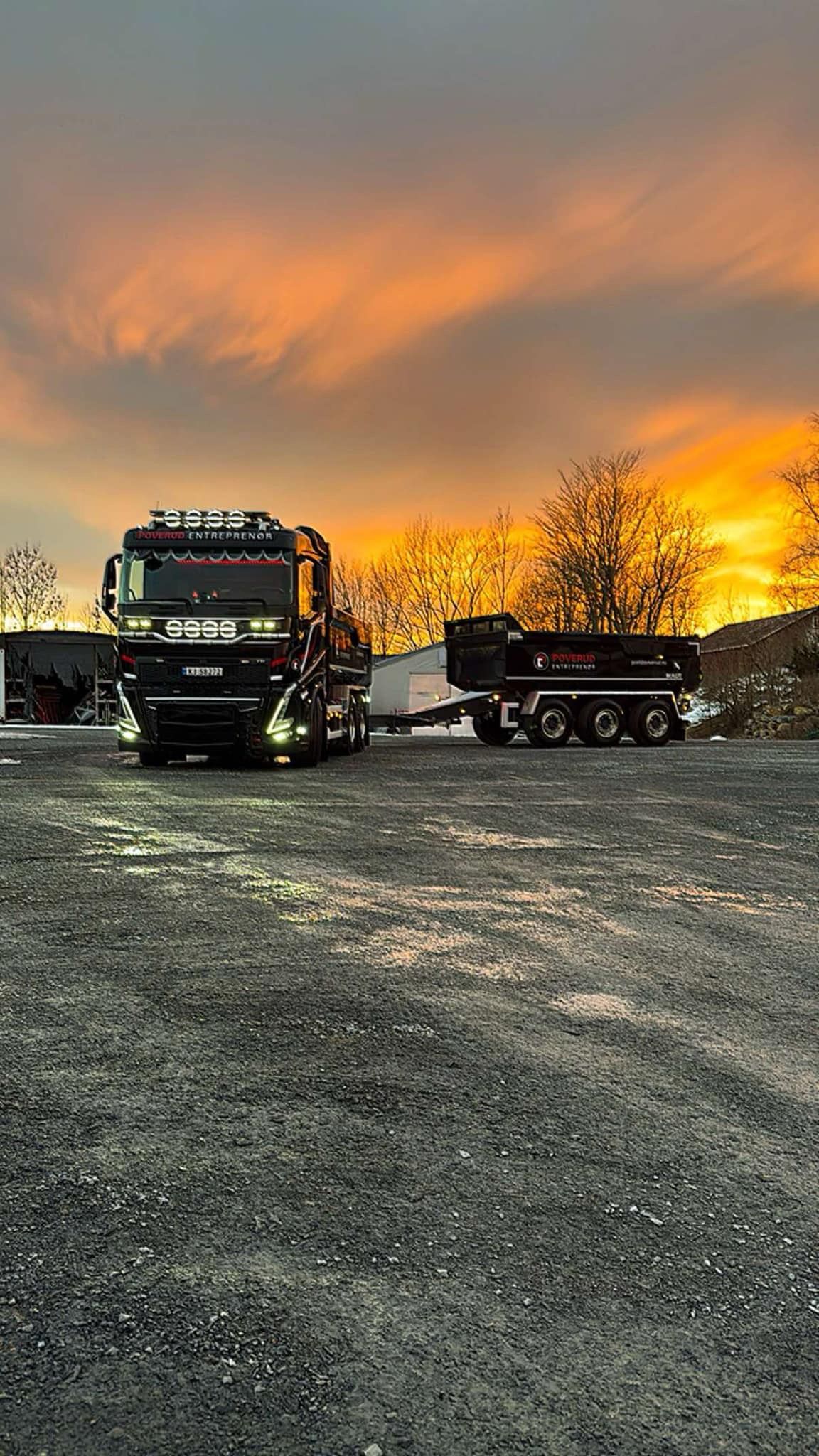 Vi har en Volvo tippbil og en Volvo krokbil i vår maskinpark med diverse utstyr.